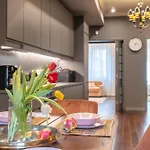 A full kitchen features coffee and tea making equipment, along with a microwave, a fridge, and glassware for self-catering purposes. Kino Odeon bus stop is very close to the 106 m^2 Premium Apartments - Top-Notch Place 2Br/2Bth.